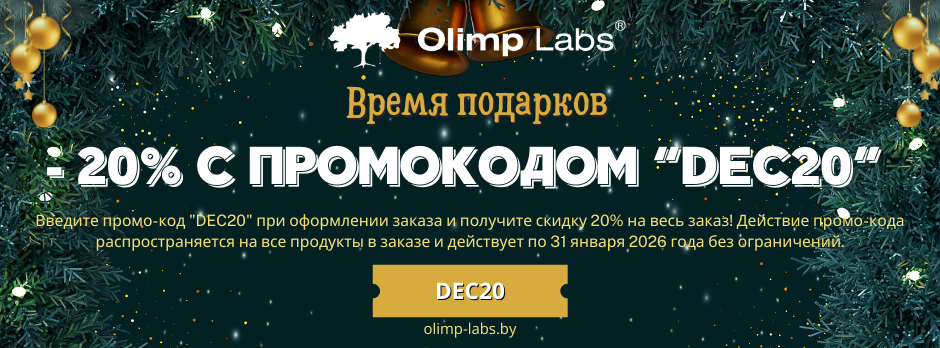 Введите промо-код "DEC20" при оформлении заказа и получите скидку 20% на весь заказ! Действие промо-кода распространяется на все продукты в заказе и действует по 31 января 2026 года без ограничений.